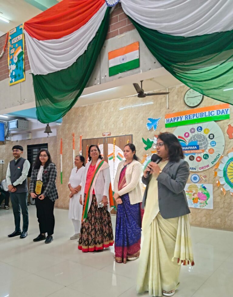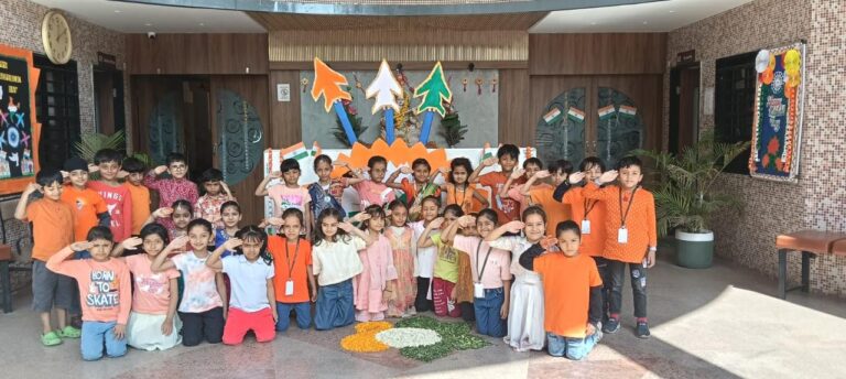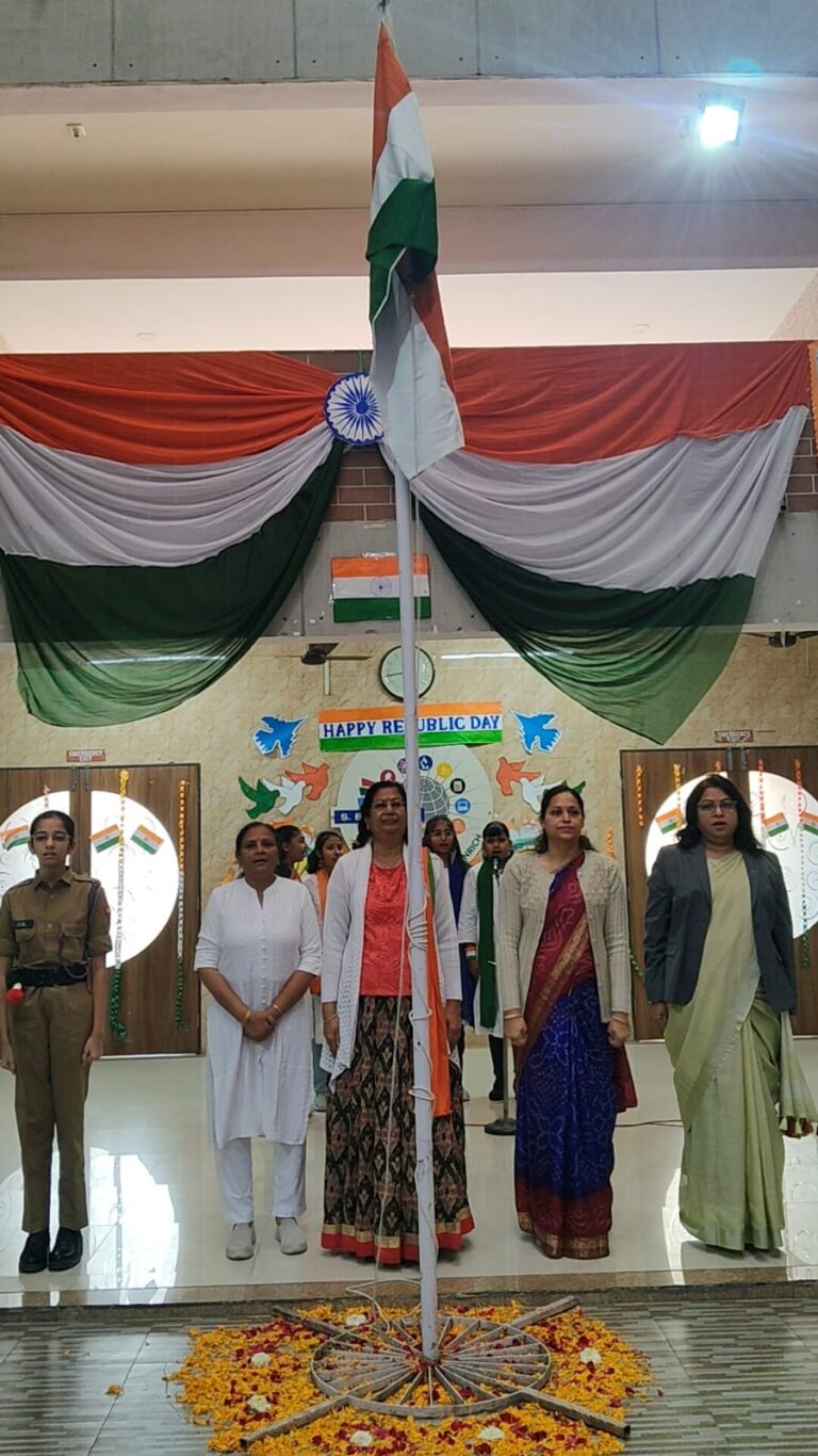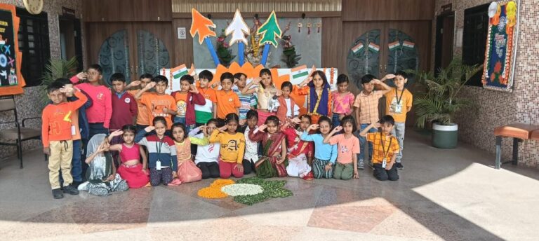 The celebration was graced by Dr. Kalpana Khanderia our Guest of Honour, Nisha Nair (Guest) , Dr. Sonam Sharma Ma’am (Education Director), Mrs. Upasana Awasthi (Principal), staff, and students, followed by a proud flag hoisting ceremony.